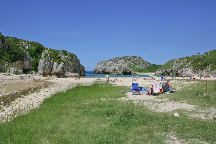 Playa España. En un entorno de prados y grandes acantilados se enmarca la playa España, sometida a un potente oleaje, en la que la proximidad de un camping explica la considerable afluencia de veraneantes a ella. Características generales: ..